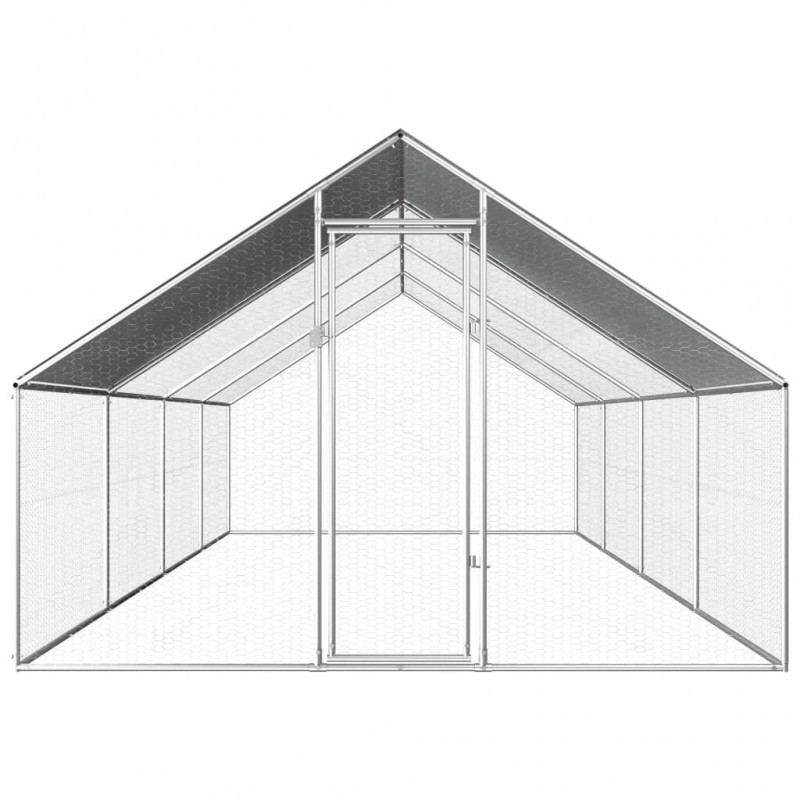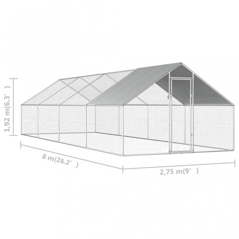 - - 170791 Outdoor Chicken Cage 2.75x8x1.92 m Galvanised Steel Pet Supplies Rabbit House Pet Home Puppy Bedpen Fence Playpen
