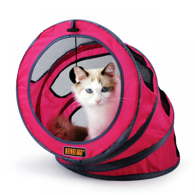 -A great interactive toy! Cats love to run into tunnels, and the crinkly fabric of these gives them added interest. There's a dangling ball toy in it.