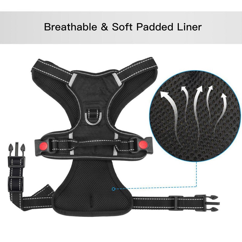 2. No Pull & No Choke: Our dog harness is with 2 Sturdy Metal D-Ring on front/back range for attaching leash, front clip for discouraging pulling and back for relaxed walking. Pulling pressure is evenly distributed to the body to prevent Choking.